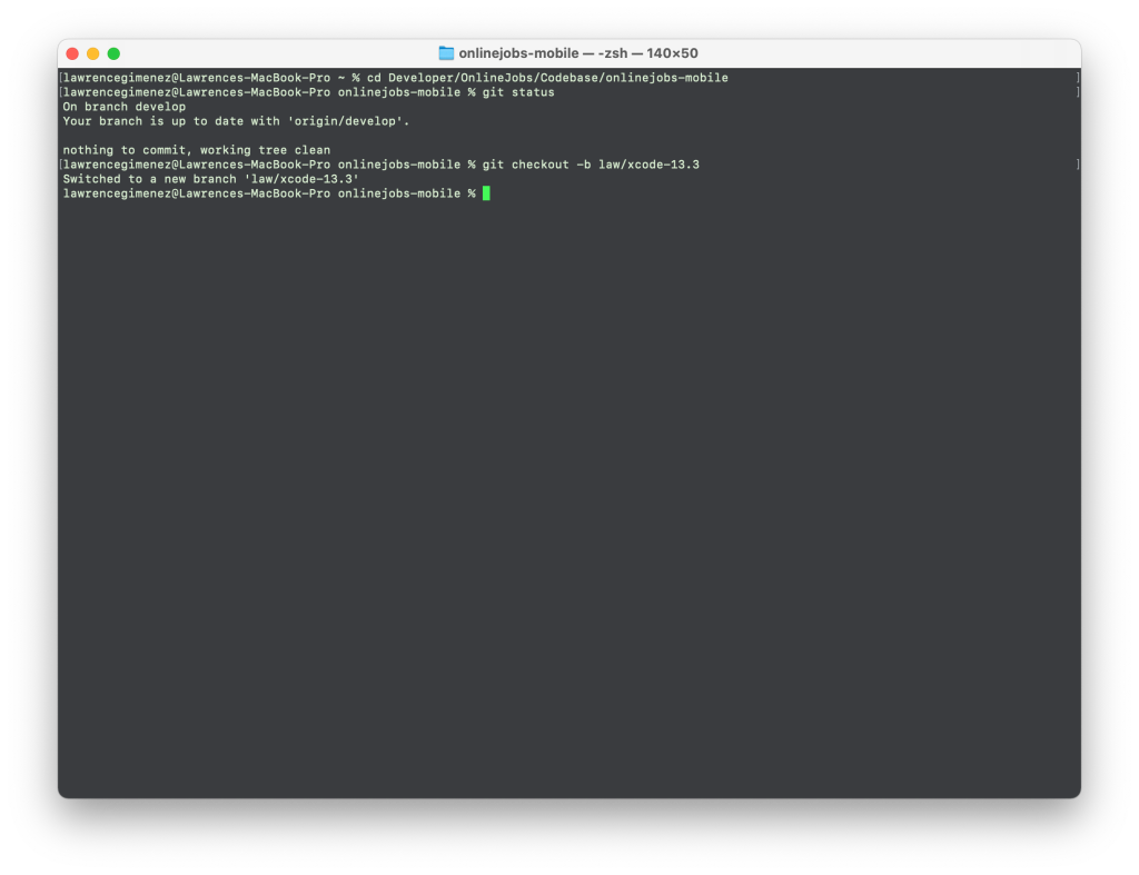 git statusto make sure there are no uncommited changes from the previous day. Switch to a new branch and compile the codebase to the latest Xcode beta.
