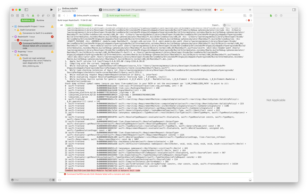 Back to work, Xcode beta is done installing. Time to compile our codebase. At this point, the build failed.