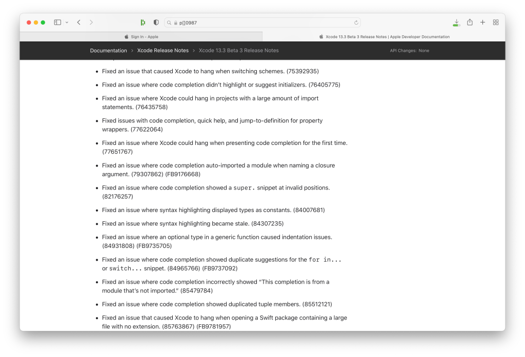 - While wating for Xcode to finish downloading, I start reading the Xcode 13.3 Beta 3 Release Notes and check if there are any potential issues or deprecations that may affect our codebase.