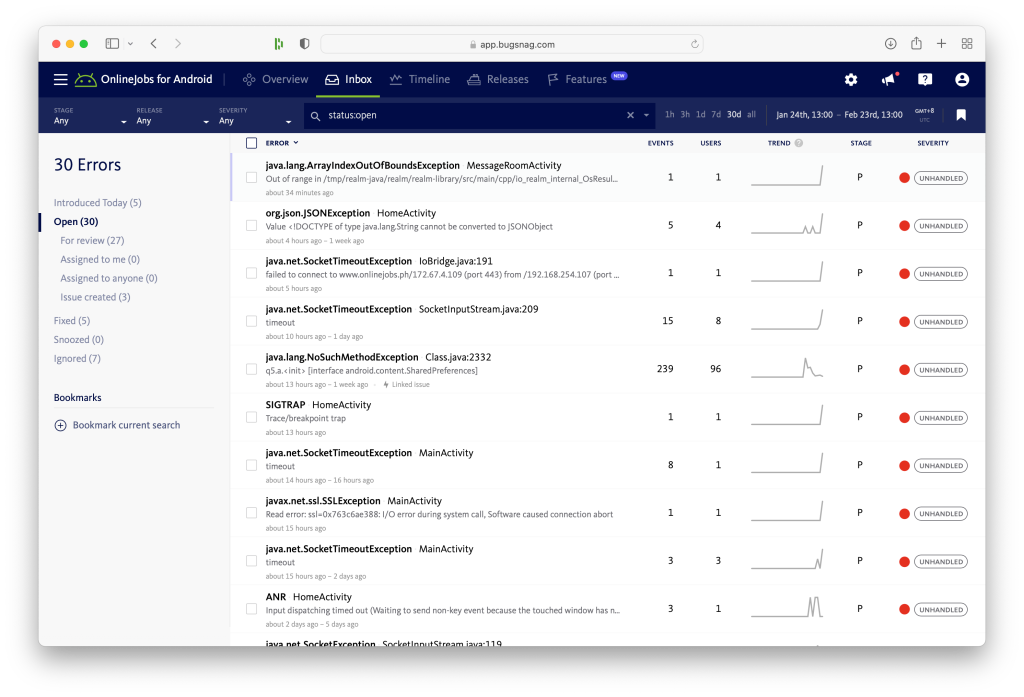 I do the same thing with our Android app, review Android bugs from the previous week. As you can see it has more bugs compared to iOS, thing is our app still supports Android 5.0 Lollipop. Yikes!