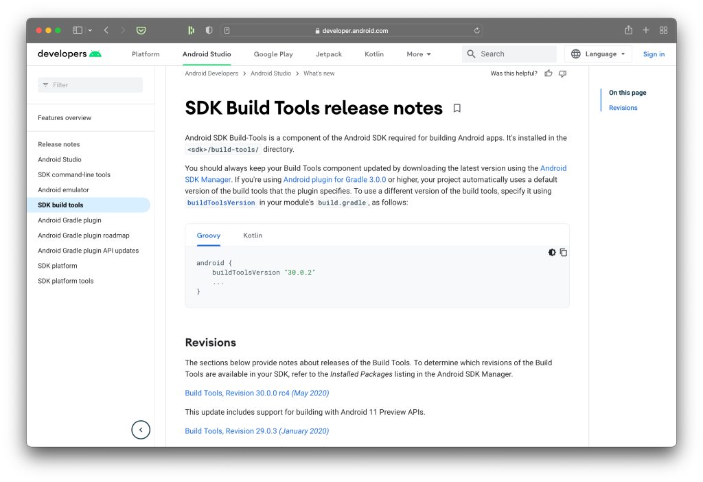 Why Install Android SDK Build-Tools 29.0.2? According to https://developer.android.com/studio/releases/build-tools, version 29.0.2 has been released back in August 2019. The latests version is 30.0.2.
