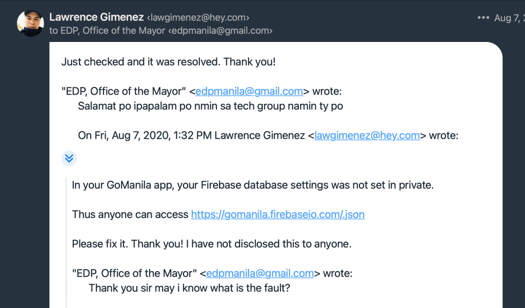 I found a simple vulnerability of GoManila, the app from Manila's Office of the Mayor.