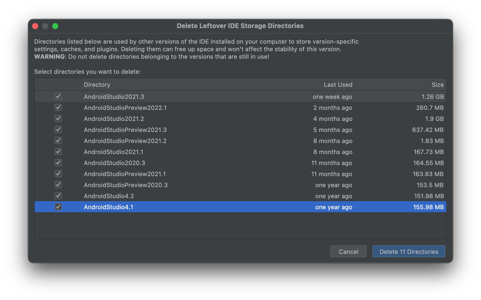 Thanks to this Reddit post, I just found out that you could remove unused Android Studio cache or leftover versions.