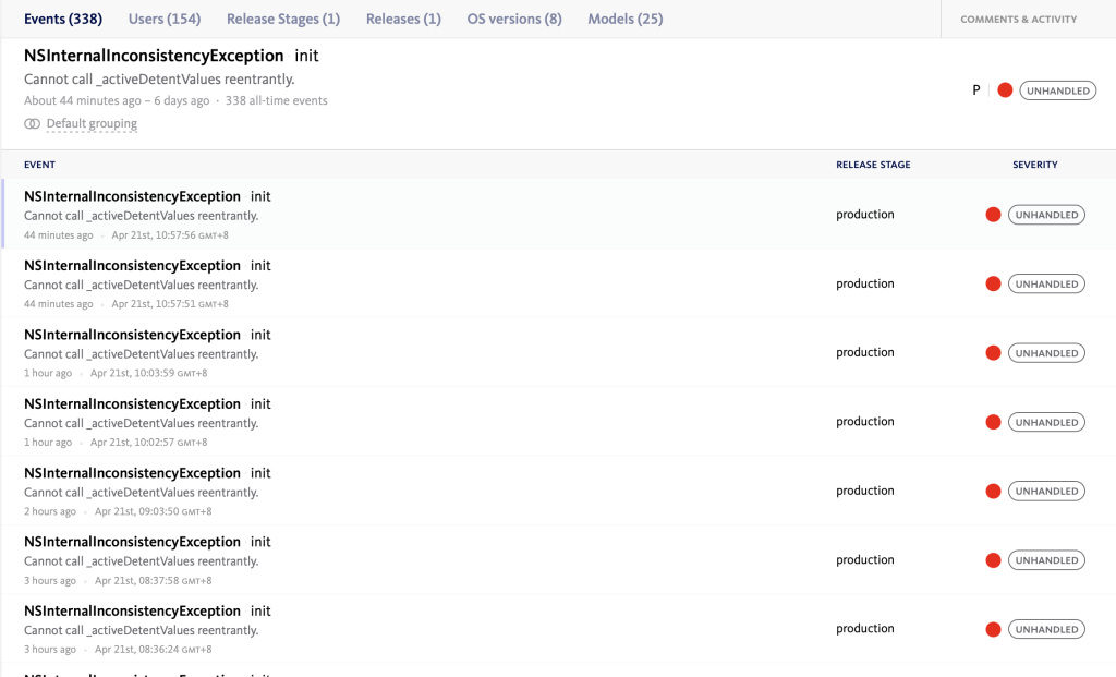 When I open the Bugsnag dashboard, I could see it was affecting hundreds of users. As of this moment, 154 users. Yikes!