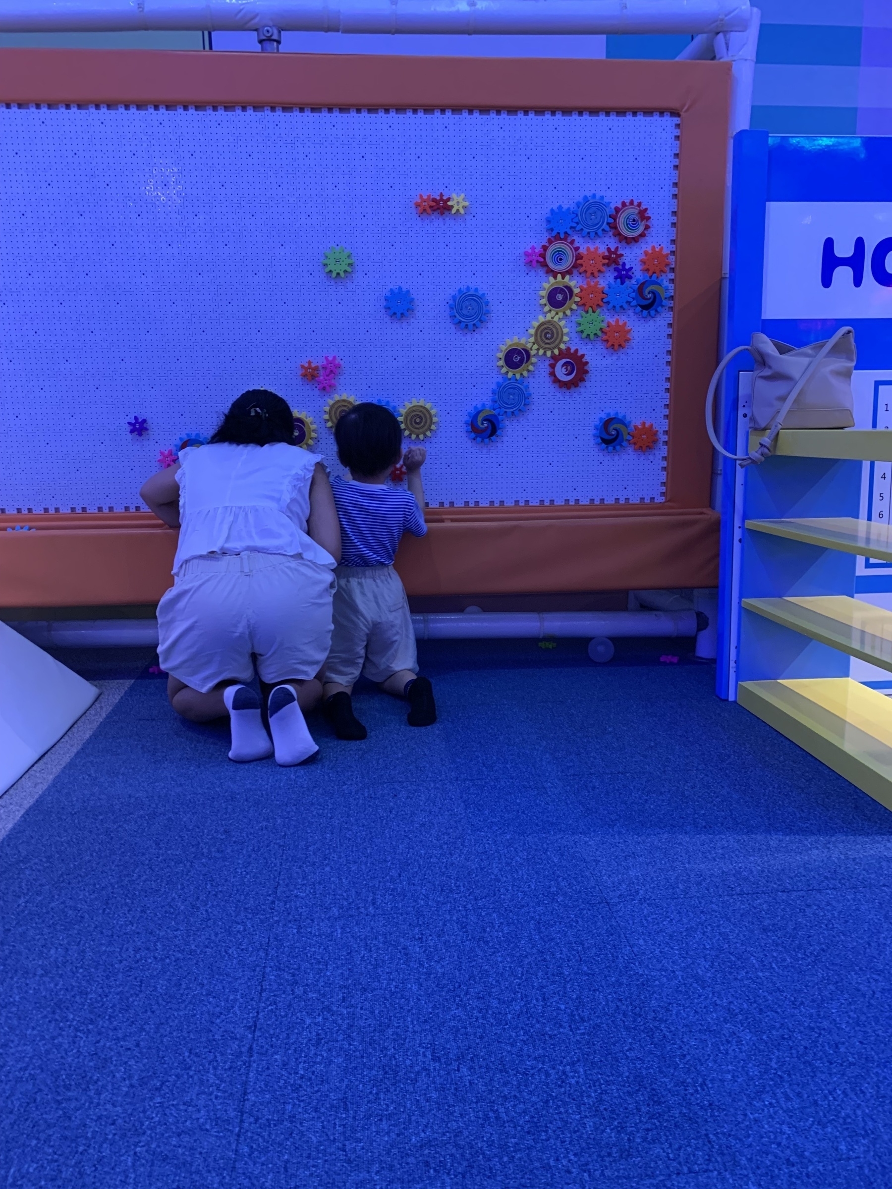 Luke also explored the other sections and toys in the playhouse. At one point there were kids playing near him, but he didn’t fuss or anything. He just continued to play. We were so happy and proud of our little kiddo! Luke also got to play inside the playhouse with Nice and Juretz!