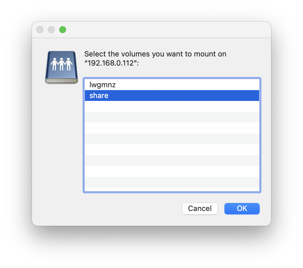ifconfig -aOn macOS, open Finder, Go - Connect to Server and enter smb://192.168.0.112 and enter the username and password from the command line above.