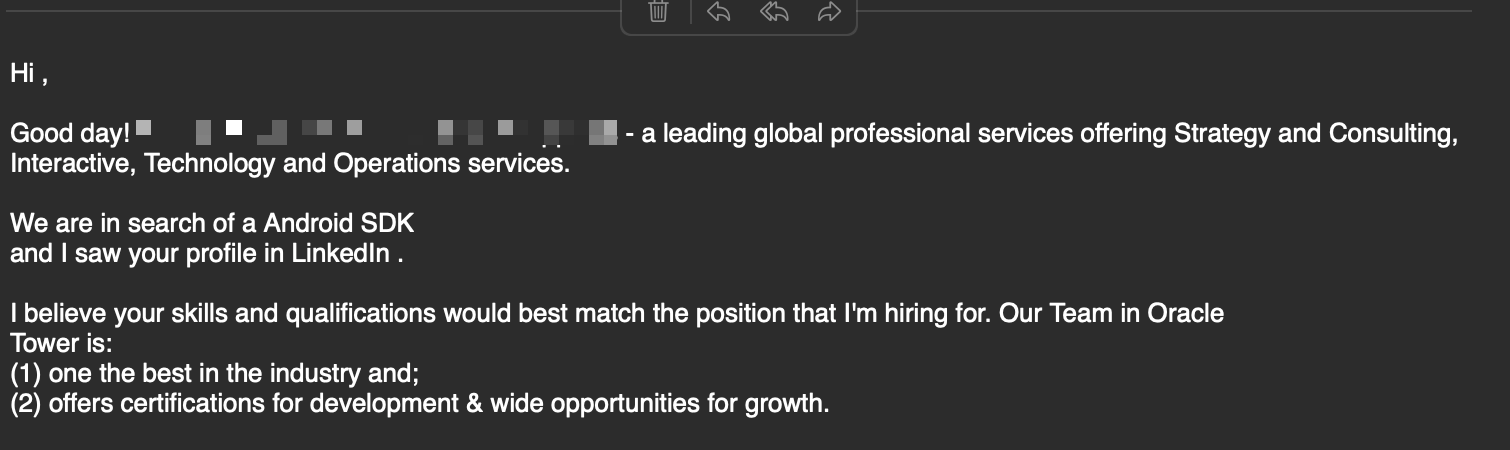 We are in search of “a Android SDK”. Why do I get the feeling that this email was generated by a bad case of AI/ML.