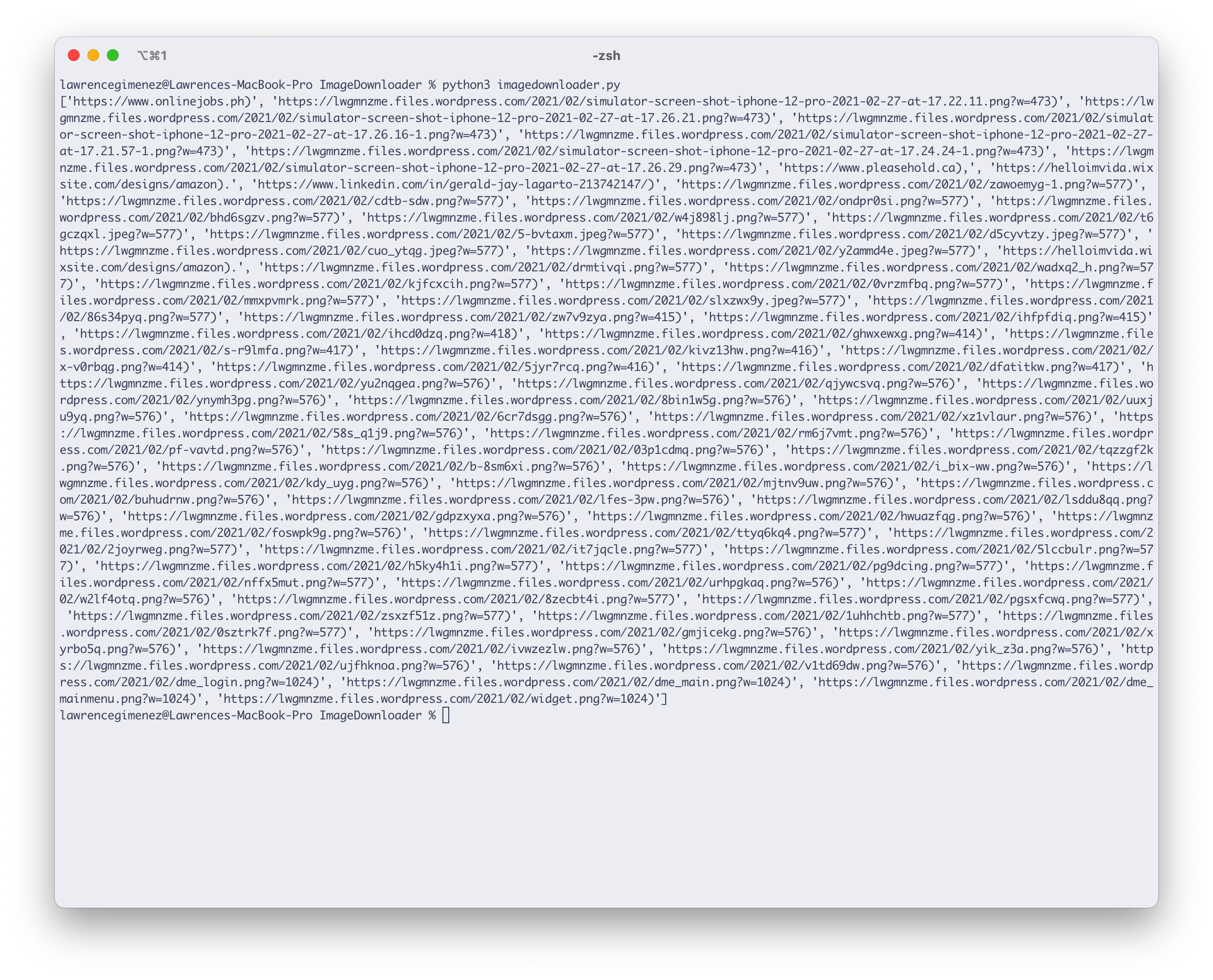 sudo pip3 install requestsThe plan is to be able to input several URLs and maybe prompt a shortcut key or something to cue the script that it’s time to download the images.
